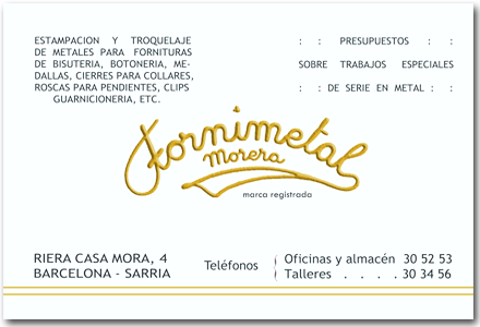La nova fàbrica tenia una superfiie de més de 1.000 m², i poc a poc es va anar omplint de maquinària d'estampació i troquelatge per a la fabricació de peces en metall per a diferents usos: fornitures per bijuteria, botons, medalles, tanques per collarets, arracades, clips, guarnicioneria, etc.
